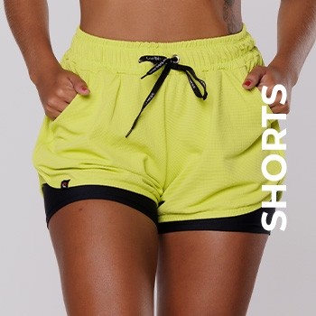 • Short Corrida Feminino Dupla face com Short Interno Cadarço
