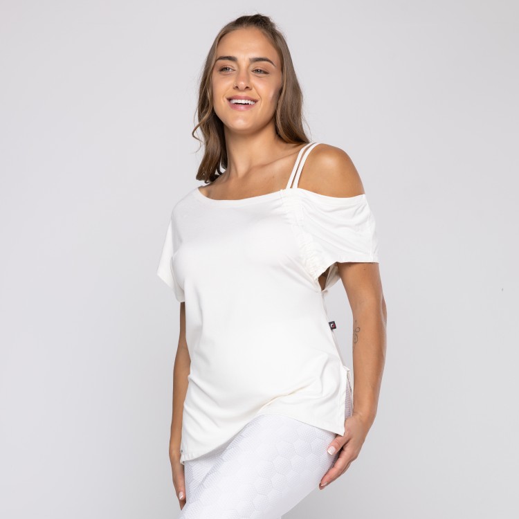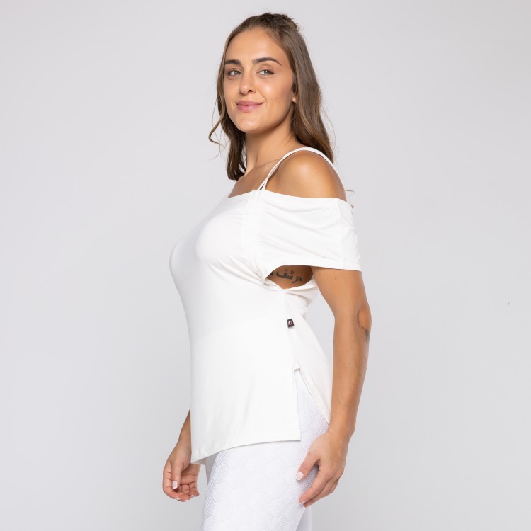 • Camiseta Fitness Feminina Larginha Altura Média Poliamida