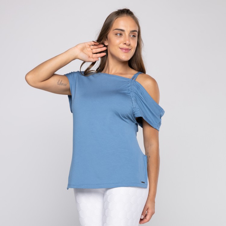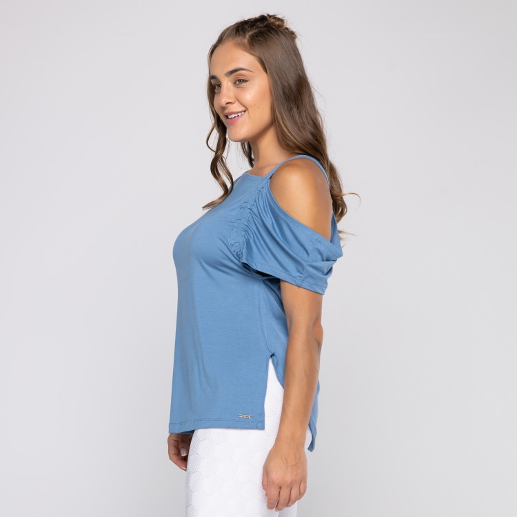 Camiseta Feminina Comprida Detalhe nas Costas em Poliamida