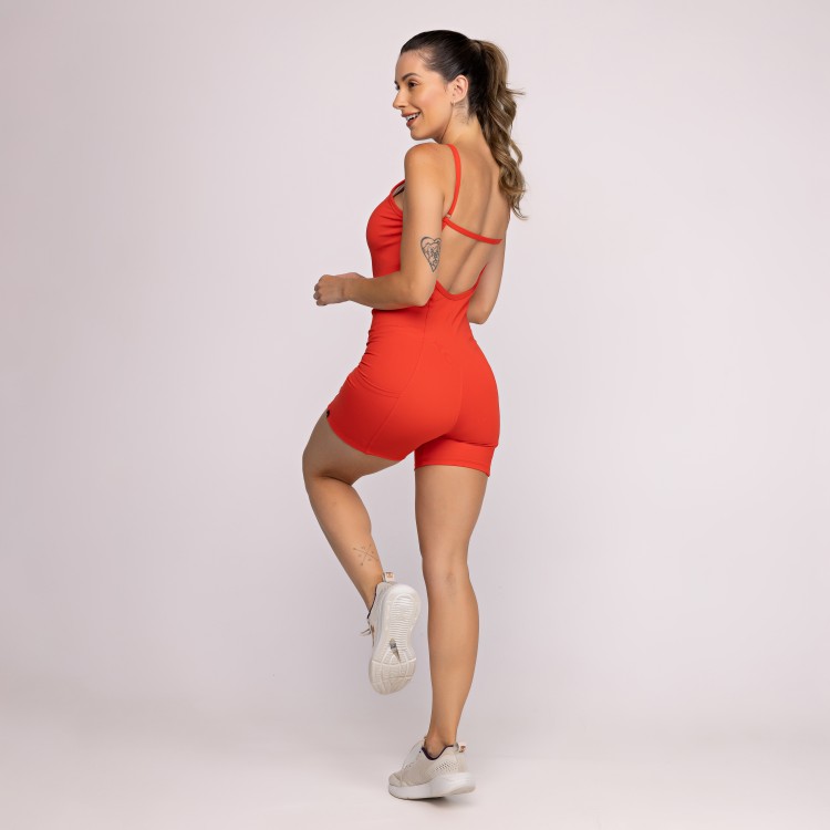 Macacão Fitness Empina Bumbum Detalhe Costas Poliamida