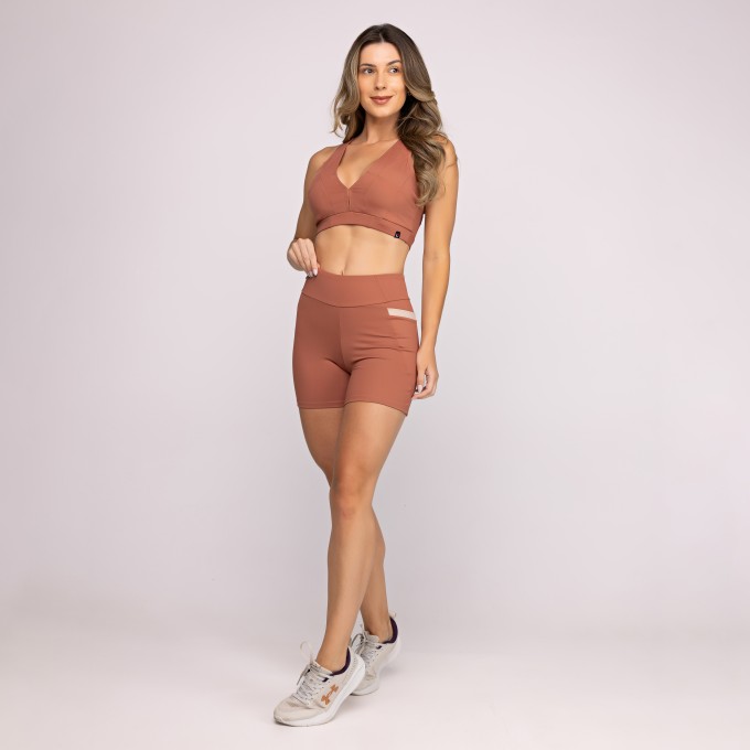 Pensado para a rotina da mulher prática, conta com bolso funcional em uma das laterais, ideal para levar o essencial com segurança e liberdade durante os movimentos.
