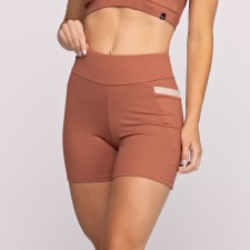 • Short Fitness Feminino Poliamida Cirrê Canelado Cós Alto