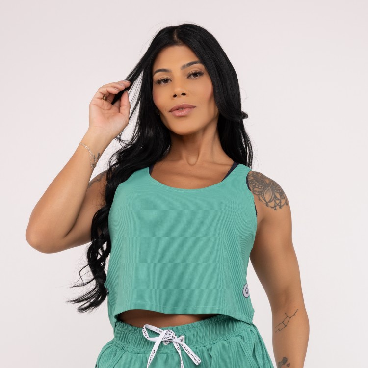 Camiseta curta de alça e costa nadador com corte mais soltinho no corpo, perfeita tanto para o treino quanto para o dia a dia.
