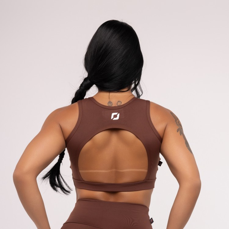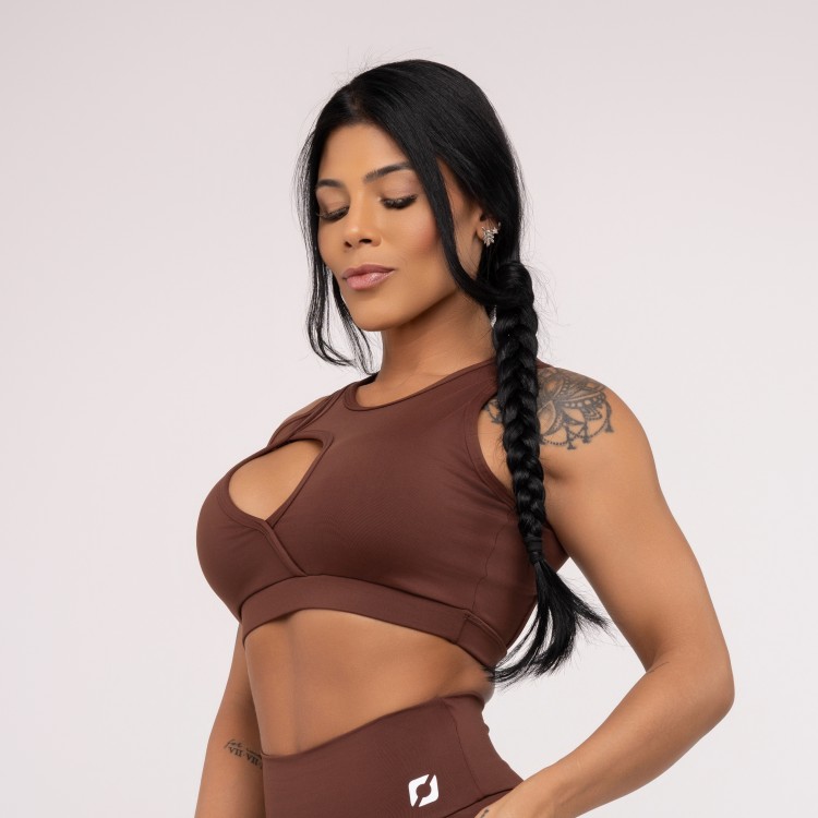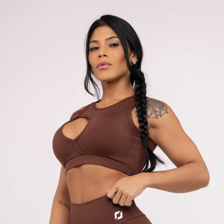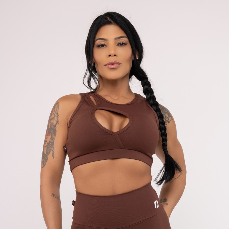 Top fitness com decote gota frontal, costas estilizadas e bojo removível, pode ser usado com ou sem o bojo.