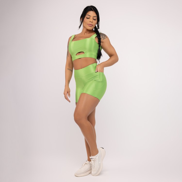 Ideal para corrida e atividades ao ar livre, o short conta com bolso funcional para facilitar sua rotina, enquanto o top, com alças largas e bojo removível, proporciona conforto e suporte na medida certa. Confeccionado em tecido de alta compressão com elastano, o conjunto une tecnologia, liberdade de movimento e um visual moderno.