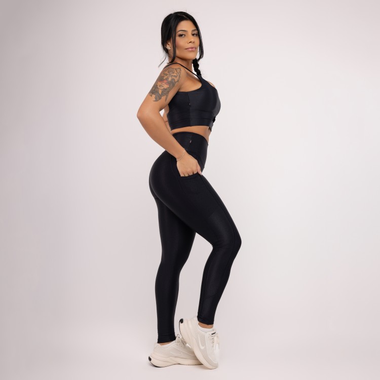 O conjunto perfeito para quem busca performance com estilo e praticidade. Composto por calça de cós alto com bolso funcional e top de alta sustentação, ele oferece ajuste firme ao corpo, modela a silhueta e garante segurança em todos os movimentos, sem escorregar.