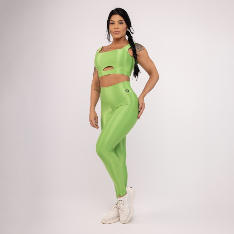 • Calça Legging Fitness Cintura Alta Poliamida Brilho Laminado