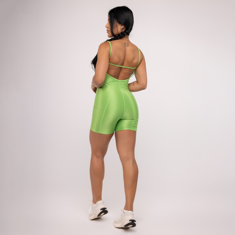 • Macaquinho Fitness Feminino Bojo Decote Poliamida Texturizado