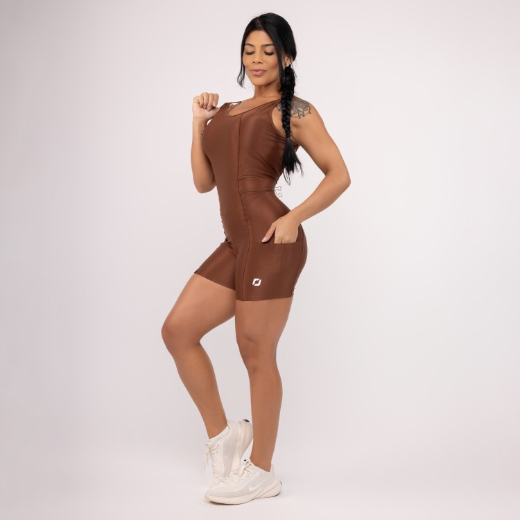 • Macacão Fitness Empina Bumbum Detalhe Costas Poliamida
