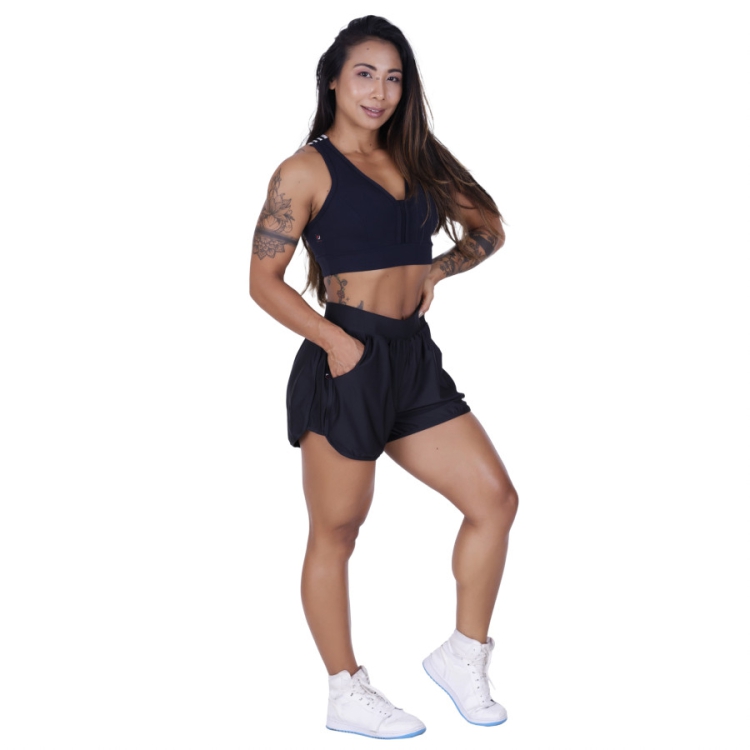 SHORT FEMININO CASUAL LIGHT BOLSO LATERAL CÓS COM ELÁSTICO.